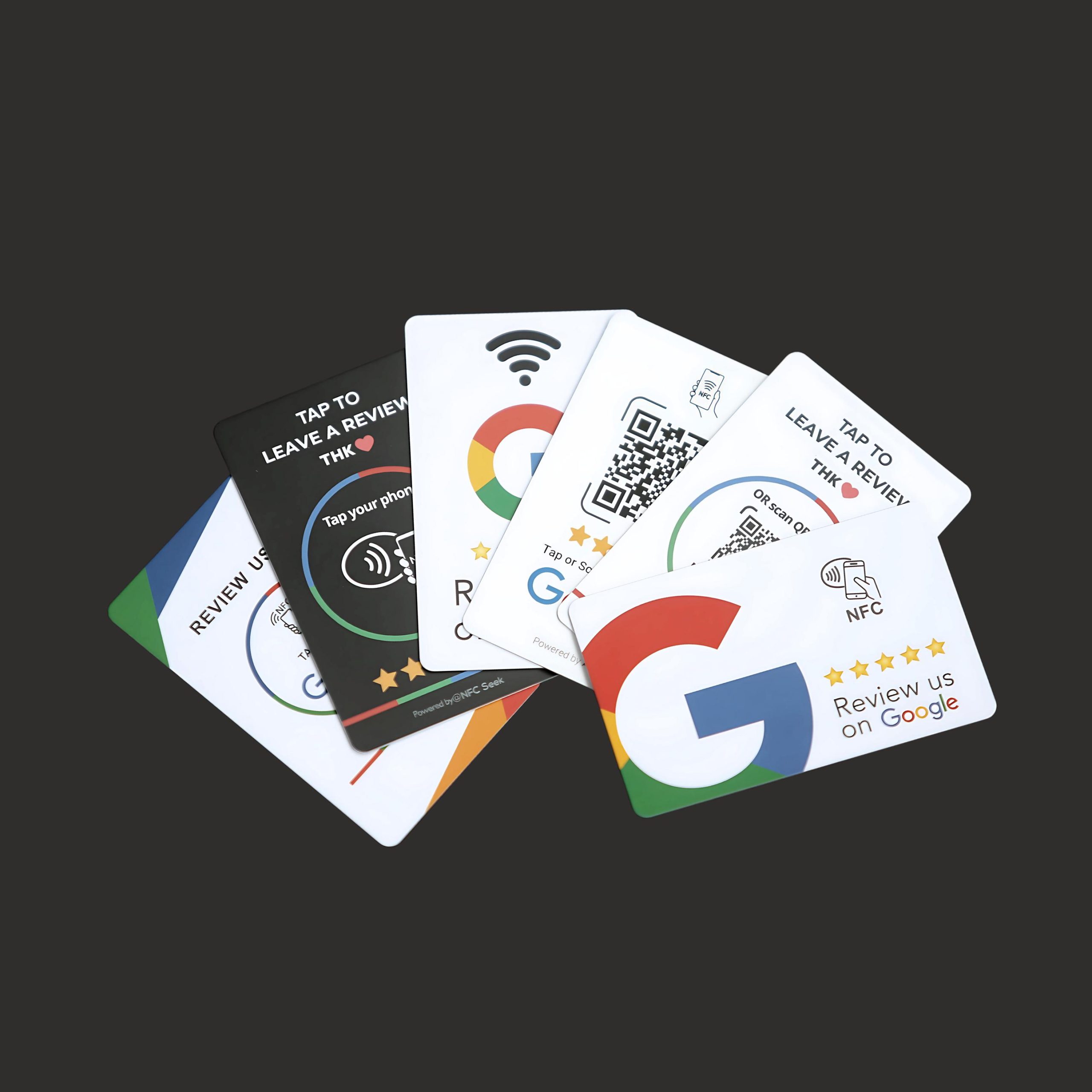 Get customer feedback anywhere, anytime. Our durable NFC stickers have a small chip inside that lets you link directly to your review page. Place them on products, menus, tables, windows, or even invoices.